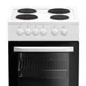 Тип конфорок: электрические • Рабочая поверхность: эмаль • Тип духовки: электрическая • Размеры (ШxВxГ): 500x850x600 мм • Цвет: белый • Конфигурация электрических конфорок: 2 x 180 мм - 2000 Вт g 2 x 145 мм - 1000 Вт g • Электрические конфорки: всего - 4 (2 конфорки быстрого разогрева) • Объем духовки: 60 л • Максимальная температура духовки: 250 °С • Очистка духовки: традиционная • Подсветка: есть