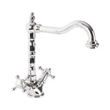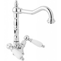 Назначение: для умывальника • Конструкция: двухрычажный • Монтаж: горизонтальный • Материал: латунь, покрытие - хром • Подводка: гибкая • Монтажные отверстия: 1 отверстие • Форма излива: традиционная • Душевая лейка в комплекте: нет • Аэратор: есть • Донный клапан в комплекте: есть