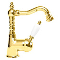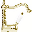 Назначение: для биде • Конструкция: однорычажный • Монтаж: горизонтальный • Клапан: керамический • Материал: латунь, покрытие - золото • Подводка: гибкая • Монтажные отверстия: 1 отверстие • Форма излива: традиционная • Душевая лейка в комплекте: нет • Аэратор: есть • Донный клапан в комплекте: есть