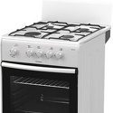Тип конфорок: газовые • Рабочая поверхность: эмаль • Тип духовки: газовая • Размеры (ШxВxГ): 500x850x560 мм • Цвет: белый • Газовые конфорки: всего - 4 • Объем духовки: 50 л • Очистка духовки: традиционная • Тип управления: механическое • Переключатели: поворотные • Ящик для посуды: есть • Комплектация: противеней - 1, решетка