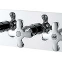 Назначение: универсальный • Конструкция: двухрычажный • Монтаж: вертикальный • Клапан: керамический • Материал: покрытие - хром • Подводка: жесткая • Монтажные отверстия: 2 отверстия • Форма излива: традиционная • Душевая лейка в комплекте: есть • Эксцентрики в комплекте: есть