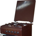 Тип конфорок: газовые • Рабочая поверхность: эмаль • Тип духовки: газовая • Размеры (ШxВxГ): 500x850x580 мм • Цвет: коричневый • Газовые конфорки: всего - 4 • Объем духовки: 50 л • Подсветка: есть • Количество стекол дверцы духовки: 2 • Тип управления: механическое • Переключатели: поворотные • Ящик для посуды: есть • Комплектация: противеней - 1, решетка