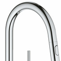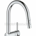 Долго и пристально выбирал смеситель на кухню между несколькими европейскими производителями. Остановились на этой модели, т. к., во-первых, у неё отличный и стильный внешний вид (коллекции других производителей мне не понравились внешне - либо были слишком вычурными, либо не подходили по стилю к нашей кухне), во-вторых, хотелось иметь выдвижную лейку (удобно ополаскивать раковину после мытья посуды: главное включить напор побольше и переключить на режим лейки). Ну и, разумеется, качество: Grohe - есть Grohe, к тому же кухонные смесители у них собираются в Португалии. Все детали очень аккуратно упакованы. Монтаж занял минут 15. Инструкция и ключ - в комплекте. Изначально были сомнения - не слишком ли уж толстый смеситель. Ответ - нет. То, что надо: бросается в глаза, но при этом выглядит стильно, а не вычурно. Заказывали через интернет-магазин (но предварительно "щупали" в обычном магазине). Недостатков для себя на находим (используем полгода), но есть особенность. Если открыт совсем (!) слабый напор воды, то на душ переключиться не удастся. Но при слабом напоре душ и не нужен: чтобы ополоснуть раковину, я включаю напор на полную мощность, а чтобы помыть посуду достаточно среднего напора. И всё работает отлично. И ещё момент - при опять-таки слабом напоре (когда чуть-чуть приоткрыли рычаг), то смеситель издают жужжащий звук. Но то же самое происходит и с любым другим смесителем. Специально прислушивался. И, конечно, любой хромированный смеситель любой фирмы надо протирать - чтобы он блестел. У этой модели от воды пачкается только основание с рычагом и реже - носик. На на сам длинный излив вода не попадает. Опять-таки - удобно.