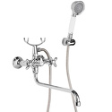 Тип - Двухзахватный, Встраиваемый - Нет, Форма излива - Традиционная, Аэратор - Есть, Назначение - Для ванны и душа, Покрытие - Хром, Термостат - Нет, Материал корпуса - Латунь, Поворотный излив - Да, Количество монтажных отверстий - 2, Присоединительный размер - 1\2", Донный клапан - Нет, Комплектация - Держатель душевой лейки, душевой шланг, ручной душ, Цвет - Серебристый