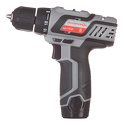 Эта модификация пользуется у населения особой популярностью. В этой машине подкупает целый ряд качеств, находящихся друг с другом в отличном балансе. Дрель очень универсальна. У нее двухскоростной редуктор, что позволяет совместить в одном инструменте весьма эффективную и удобную дрель с мощным шуруповертом, способным без особого напряжения одолеть крупный шуруп. На второй скорости дрель развивает около 1000 об/мин, и это позволяет весьма комфортно сверлить разнообразные материалы: сталь до 8 мм, древесину до 15 мм, а если потребует необходимость, то и больше. Патрон позволяет зажимать 10-миллиметровое сверло по стали, а с перьевым по дереву можно неспешно просверлить вдвое большее отверстие по диаметру чем-то, что считается оптимальным пределом для этой дрели. При переключении на первую ступень обороты падают вдвое, примерно во столько же раз, но уже не падает, а возрастает крутящий момент: завернуть 6-миллиметровый шуруп не вызовет затруднений. Инструмент оборудован точной и «мягкой» муфтой, 15 позиций которой позволяют точно подбирать и стабильно выдерживать необходимый момент затягивания. Когда от проскальзываний только вред, например при сверлении, муфту жестко блокируют, для этого у нее есть специальное положение переключателя. Все вышеперечисленные данные характеризуют универсальность ДА-12ЭР-01. Если взять сверло диаметром 6-7 мм, то можно насверлить около 150 отверстий до неполной разрядки аккумулятора. А если заворачивать шурупы диаметром 6 мм, то не менее 100-110 шт. Не правда ли, впечатляет? Основной вид работы у дрели-шуруповерта ДА-12ЭР-01 — это заворачивание шурупов, самый трудоемкий вид ручной работы. Традиционные достоинства: электронный регулятор частоты вращения, реверс, удобный быстрозажимной патрон, комплектация кейсом, вторым аккумулятором и зарядным устройством, делающим свою работу всего за час (показатель, больше характерный для профессионального инструмента). В дополнение ряд фирменных черт: мягкая резиновая накладка на рукоятке и индикатор уровня заряда аккумулятора. Чтобы его показания были достоверны, выполняйте контроль непосредственно во время заворачивания. Ну, а кому подойдет этот инструментом? Да любому, кому не лень приложить руки к полезному делу! И профессионалы, и любители сочтут эту модель подходящей для себя.