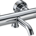 Назначение: ванна+душ • Конструкция: однорычажный • Монтаж: вертикальный • Материал: покрытие - хром • Монтажные отверстия: 2 отверстия • Форма излива: традиционная • Душевая лейка в комплекте: нет • Аэратор: есть • Эксцентрики в комплекте: есть • Донный клапан в комплекте: есть
