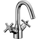 Покрытие - Хром, Донный клапан - Нет, Назначение - Для умывальника, Тип - Двухзахватный, Встраиваемый - Нет, Количество монтажных отверстий - 1, Длина излива - 116, Максимальный расход воды - 22.3, Материал корпуса - Латунь, Тип подводки - Гибкая, Термостат - Нет, Присоединительный размер - 1\2", Форма излива - Традиционная, Высота - 22.3, Аэратор - Есть, Поворотный излив - Да, Высота излива - 125, Цвет - Серебристый, Ширина - 15.7