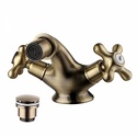 Назначение: для биде • Конструкция: однорычажный • Монтаж: горизонтальный • Клапан: керамический • Материал: покрытие - бронза • Подводка: гибкая • Монтажные отверстия: 1 отверстие • Форма излива: традиционная • Душевая лейка в комплекте: нет • Аэратор: есть • Донный клапан в комплекте: есть