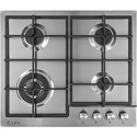 Поверхность: варочная панель • Тип поверхности: газовая • Рабочая поверхность: нерж.сталь • Число конфорок: 4 • Установка: независимая • Газовые конфорки: всего - 4 (1 конфорка "Тройная корона") • Газ-контроль конфорок: есть • Тип управления: механическое • Переключатели: поворотные • Электроподжиг: есть, автоматический • Размеры: 590x500x95 мм • Размер ниши для встраивания: 550x480 мм • Цвет: панель - нерж.сталь