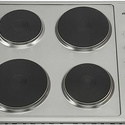 Поверхность: варочная панель • Тип поверхности: электрическая • Рабочая поверхность: нерж.сталь • Число конфорок: 4 • Установка: независимая • Электрические конфорки: чугунные; всего - 4 • Конфигурация электрических конфорок: 2 x 1500 2 x 1000 • Тип управления: механическое • Переключатели: поворотные • Максимальная потребляемая мощность: 5000 Вт • Размеры: 590x520 мм